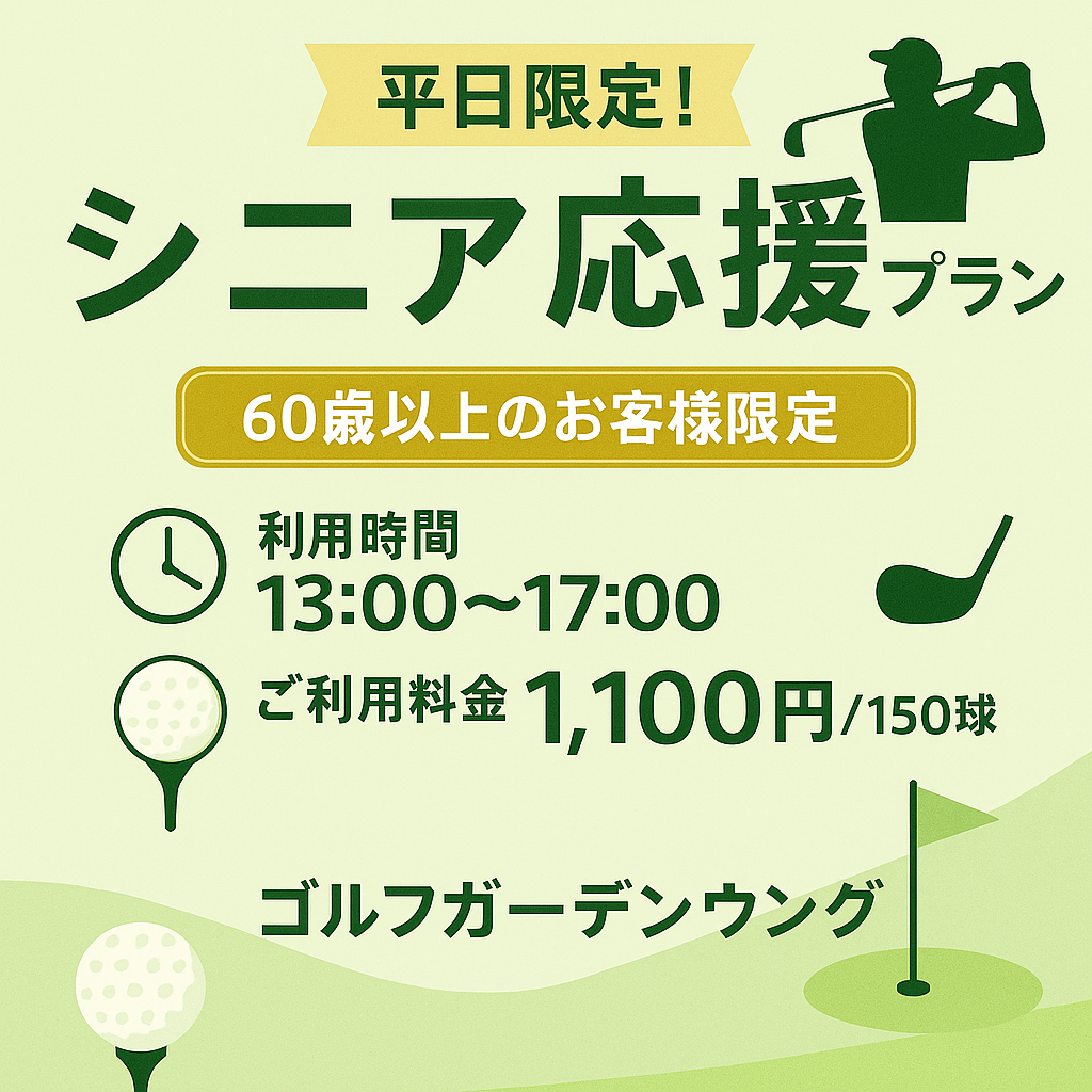 11月に入り、空気が澄んでボールの弾道も美しく映える季節となりました🍁 ゴルフガーデンウイングでは、60歳以上のお客様を対象にした平日限定⛳️ 「シニア応援プラン」 を実施しています。13時〜17時の時間帯に、150球が… 続きを見る »