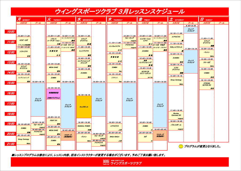 いつもウイングスポーツクラブをご利用いただき、誠にありがとうございます。